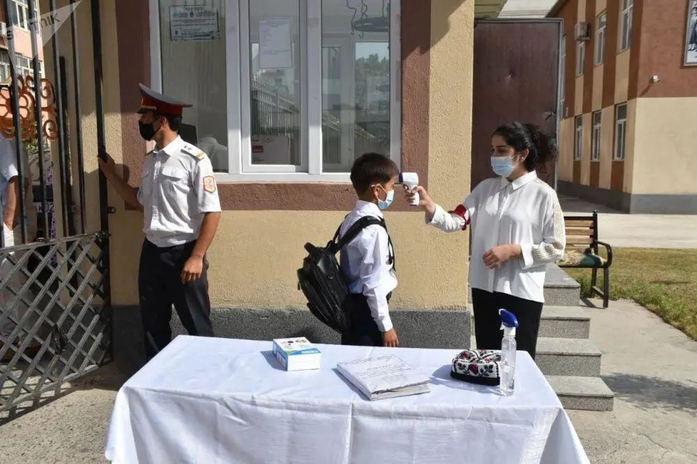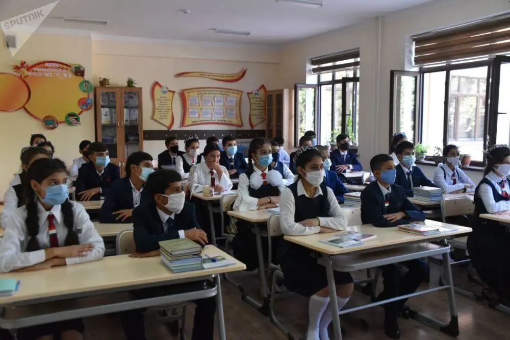 所有學生必須佩戴口罩。所有教師在開學前均做了新冠病毒檢測,學生在學校門口要接受測溫。#看塔吉克斯坦辣媽是如何平衡家庭與事業的