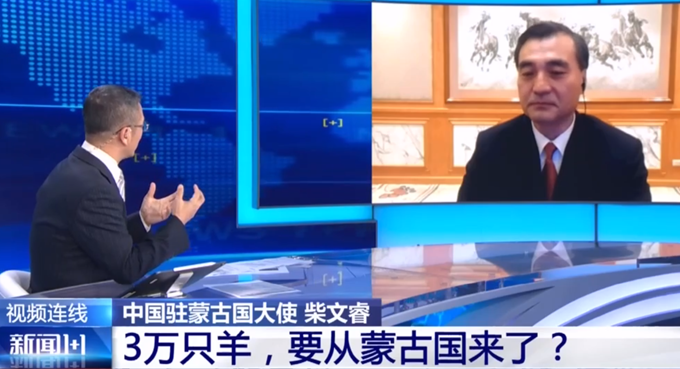 中國駐蒙古國大使柴文睿17日晚在一檔節目上介紹了贈羊進展。