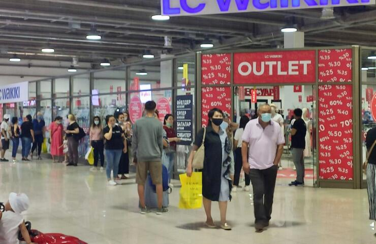 阿拉木圖「放縱」的第一天,有一家購物中心排起了長隊。
