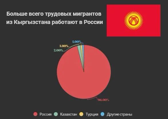 如上述研究所示,吉爾吉斯斯坦人中有96%在俄羅斯工作,2%在哈薩克斯坦,1%在土耳其,近期,吉爾吉斯斯坦勞動力也有湧向韓國的趨勢。