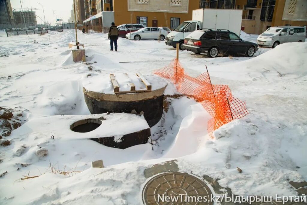 努爾蘇丹的扎加勞區被居民稱為井蓋雷區。開放式的井被居民用鐵絲和木頭等做了標誌。但還有一些井是敞開的。