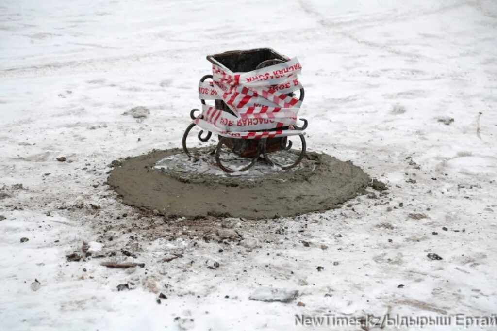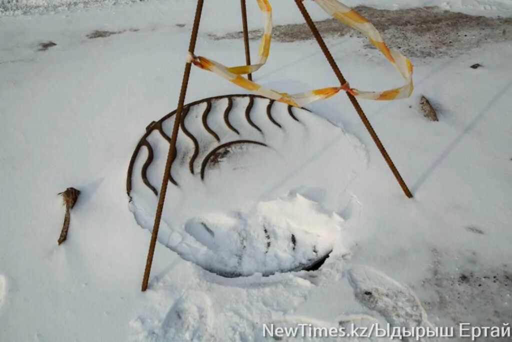 這有一個木制托盤,結合鐵棍防止人們掉入井中。#哈薩克斯坦首都一咖啡館發生爆炸 致1死33傷