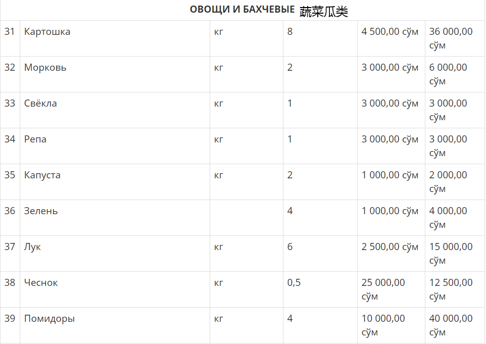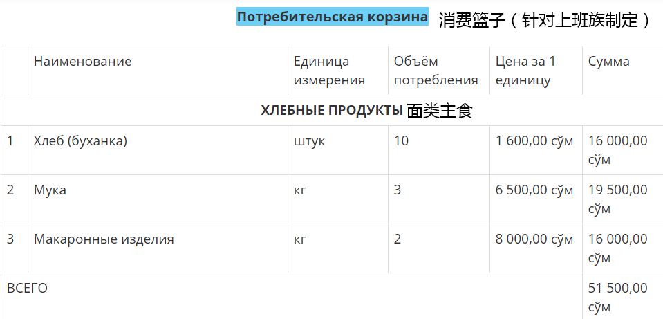 消費籃子計算結果顯示,在烏茲別克斯坦如果要豐衣足食,一個月大約需要200美元(約215萬蘇姆)。#烏茲別克斯坦食品價格終於要回落啦