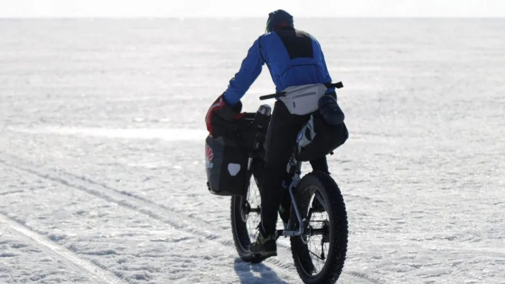 「由於冬季異常溫暖,冰上自行車行駛距離為250公里,而不是原計劃的600公里,正是因為湖面迅速融化。往年,巴爾喀什湖結冰直到四月份,但今年的冰層在2月底就開始融化。因此,起點必須從巴爾喀什湖的東端移到東北部的阿庫倫角,最後在巴爾喀什西部的圖拉拜角完成挑戰」亞歷山大·加布琴科告訴記者。