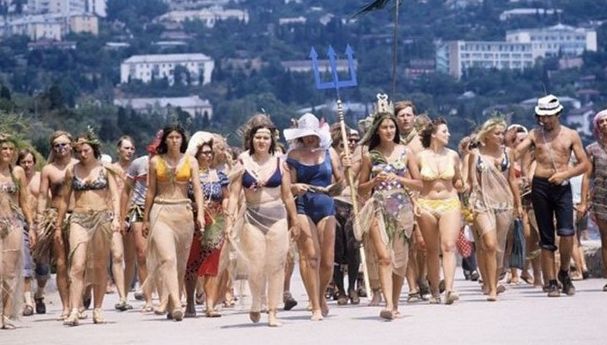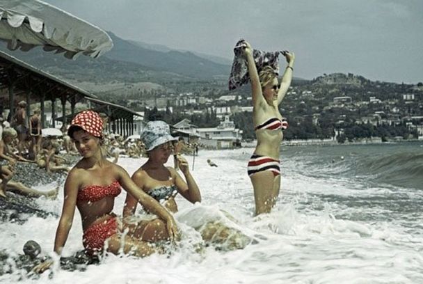 Мишка-попрошайка, 1960 год 熊熊賣萌求投餵,1960年И ведь немного для счастья нужно было, иногда даже лужи было достаточно 對於幸福快樂來說並不需要很多,有時幾個水坑就夠了Вот так выглядел настоящий мужской клуб! 這才是真正的男子俱樂部的樣子!В комнате смеха 孩子們在哈哈屋裡 В каждой советской семье был бидон для молока 每一個蘇聯家庭里都備有一個牛奶桶Образцовый интерьер квартиры в СССР, 1970-е 蘇聯時期標準公寓內部裝修,20世紀70年代 Насыщенное судоходное движение на Волге. Нижний Новгород, 1958 год 真實的伏爾加河航運。下諾夫哥羅德,1958年Юрий Гагарин в Сочи, 1961 год 尤里 · 加加林在索契,1961年 Мальчишки играют в бильярд, сделанный своими руками, и покрытый старым одеялом. 1967 год 男孩們在玩自制台球,用舊床單做的台面。1967年 Колбаса по ГОСТу 符合全蘇標準的香腸 Памятник Медный всадник в Ленинграде 列寧格勒的青銅騎士紀念碑 Участники концерта, посвященного 60-летию образования СССР. 15 республик, 15 сестер! 蘇聯成立60週年紀念晚會的表演人員。15個共和國,15個姐妹! Девочка на параде 1 мая 五一勞動節遊行裡的小女孩Общественная нагрузка в советской школе 蘇聯學校的集體勞動早期加油站啊,浪漫!多麼熟悉的紅領巾!!!注意看俄語 (Go home, no vodka! )