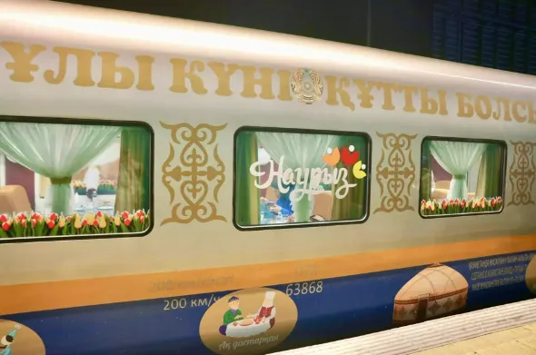 據衛星網消息,哈薩克斯坦國家鐵路公司近日表示,在納烏魯斯節期間,鐵路公司安排了充滿民族特色的節日列車從阿斯塔納火車站出發。