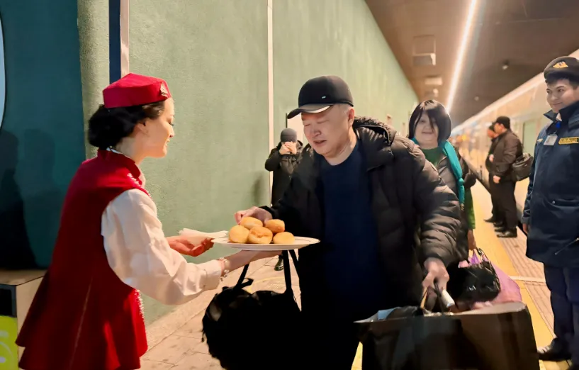 還為每位乘客準備了節日美食:納烏魯斯粥和包爾薩克,在火車上營造出濃烈的節日氛圍。