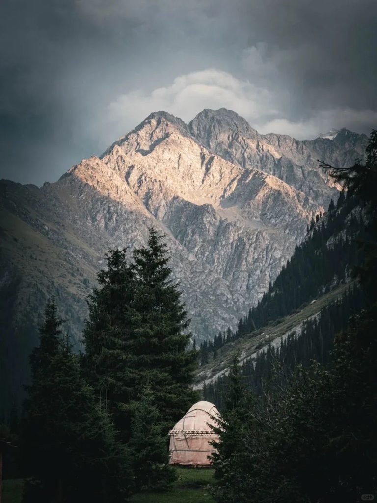 步於阿拉圖山麓的郊外,清新的空氣撲面而來,令人心曠神怡。極目遠眺,廣袤無垠的草原彷彿與湛藍的天空融為一體,一眼望不到邊際。草原之上,星星點點的氈房如同灑落的珍珠般點綴其中,當地人稱其為 “氈帳”。走到氈帳外,身著鮮艷民族服裝的牧民們格外熱情,紛紛邀請我們入帳做客,還為我們端上了醇香的馬奶酒。品嘗著別具風味的馬肉,耳邊回蕩著冬不拉那動人的弦樂聲,那一刻,彷彿穿越了漫長的時光隧道,回到了千百年前的遊牧時光。