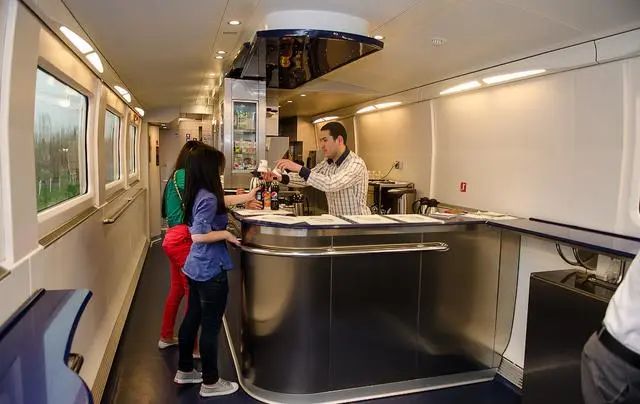 在高鐵列車上,你可以單獨購買餐食,這不包括在票價中。許多乘客使用了這項服務。