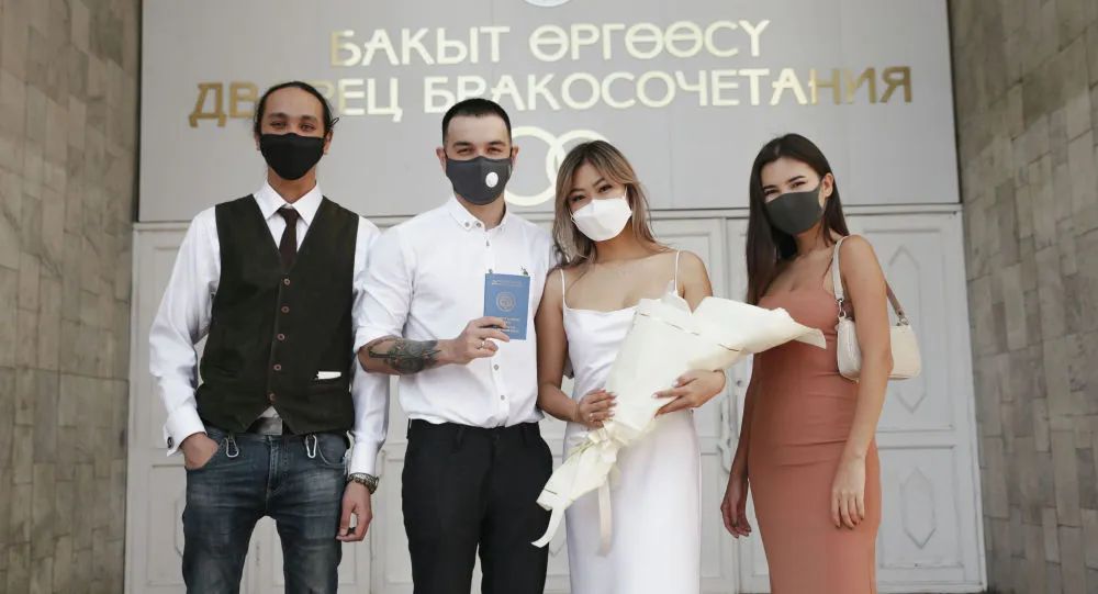 日前,比什凱克居民尤利婭和伊斯坎德爾在緊急狀態條件下舉行了一場僅有35人在線觀禮的婚禮。