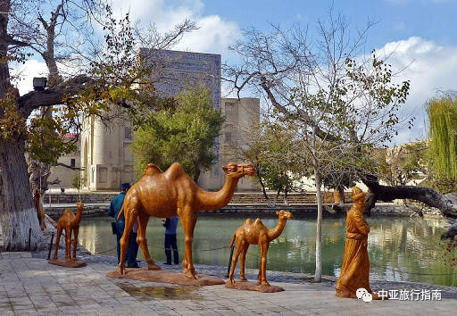 古代的布哈拉城裡修建了多個蓄水池(Hauz),並依靠著一個完整的溝渠網絡和200余座水池,保障著城裡居民的用水。如今的城市中心還留有一個46×36米的大水池和一座廣場,它們被當地人合稱為Lyabi-Hauz,意為「池畔廣場」。廣場周圍的咖啡廳、餐廳和工藝品店裡熙熙攘攘,老建築的門前遊客們用相機記錄下自己的足跡。