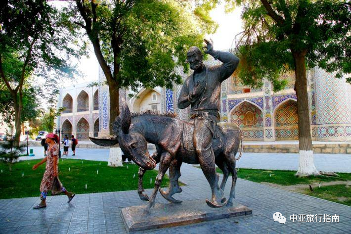 廣場的另一個標誌是一座騎著毛驢的阿凡提雕像。他的智者形象和各種傳說貫穿了整個中亞國家。關於他的身世眾說紛紜,但對於烏茲別克斯坦人民來說,阿凡提的出生地就在布哈拉。