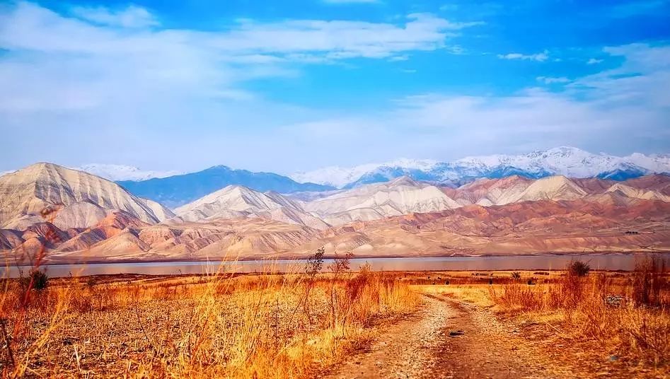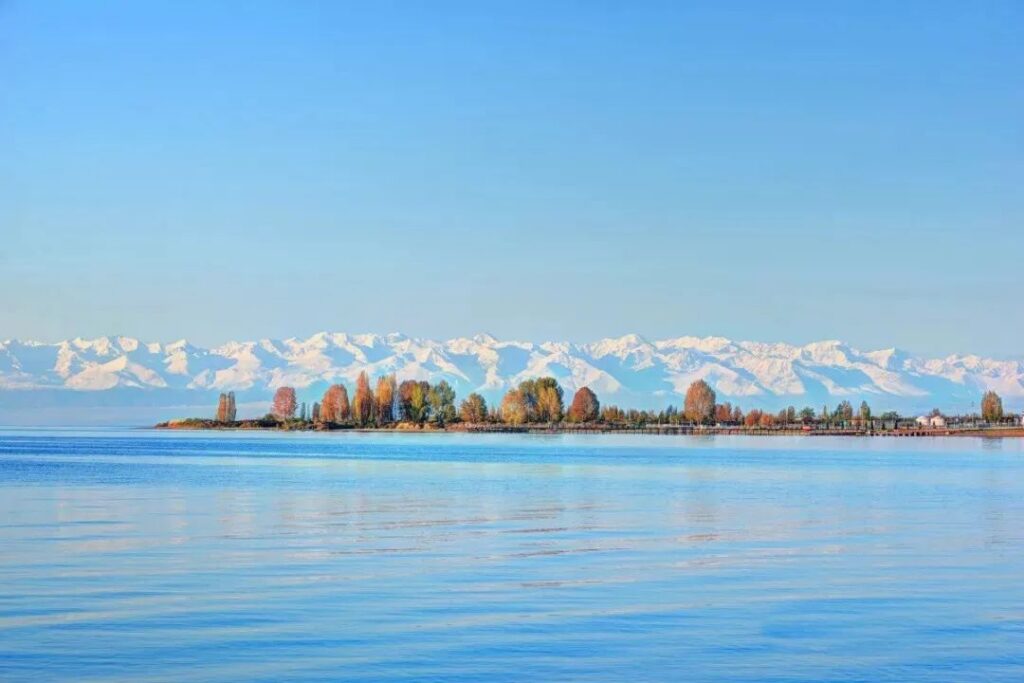 伊塞克湖有著不可思議的綿延湖岸線,隨著季節的更迭,天空、雪山、山脈、湖水、沙灘、草木……在陽光下變幻出的不同色彩。秋季,這裡就是一幅天然油畫。